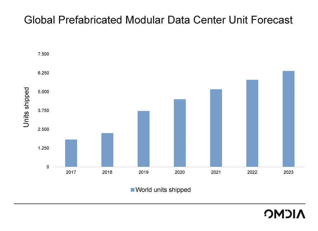 The Omdia report, Prefabricated Modular Data Centres, published in early 2020 and based on 2018 and 2019 data, valued PFM shipments at more than $1.2bn USD in 2018 with growth in deployments set to increase by more than 65% for 2019. The analyst group attributed this strong growth to a number of factors including scalability, the benefits of offsite manufacturing and integration, and speed of deployment.