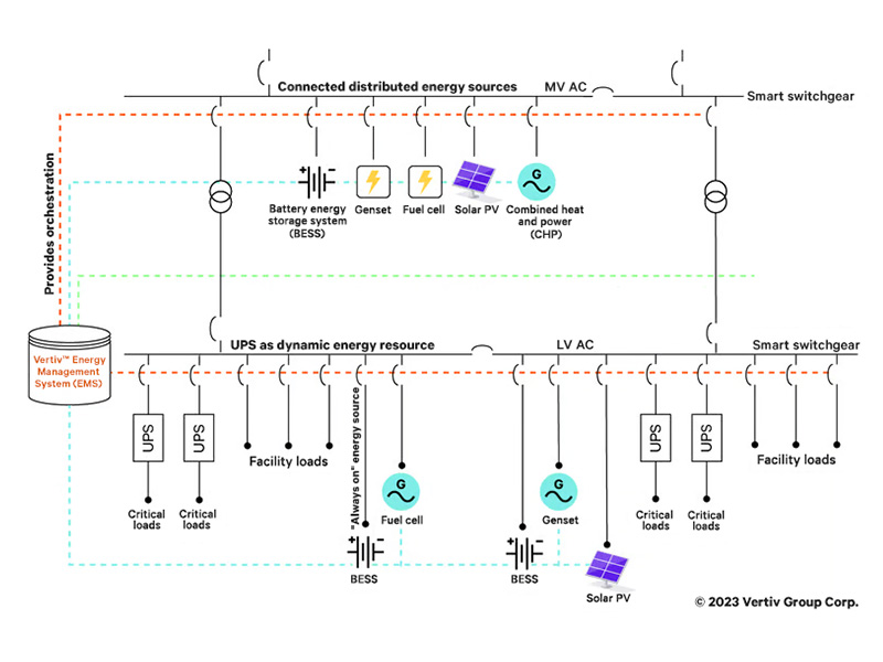 Vertiv™ DynaFlex BESS, Vertiv™ DynaFlex Microgrid Controller, and Vertiv™ EMS
