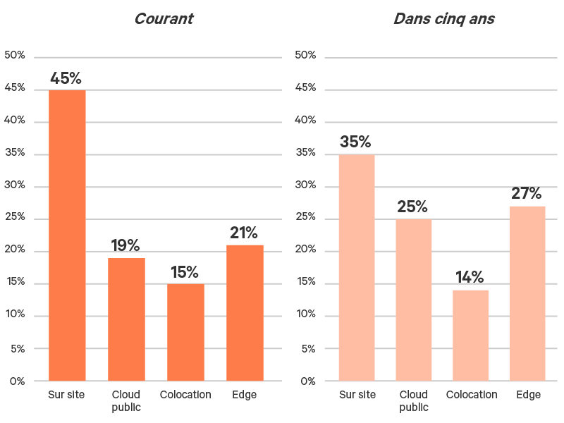 Figure 2 :Pourcentage des ressources IT déployées dans différents environnements aujourd’hui et dans cinq ans.