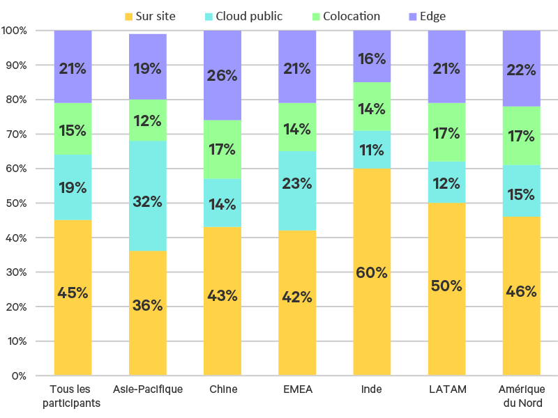 Figure 3 :Pourcentage de ressources IT déployées dans différents environnements par région.