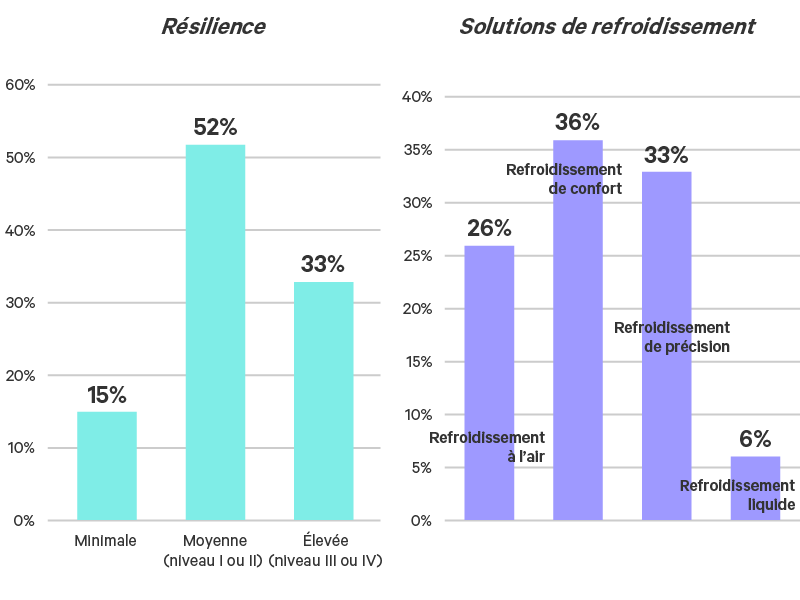 Figure 5 : Niveaux de résilience et stratégies de refroidissement pour les sites Edge actuels.